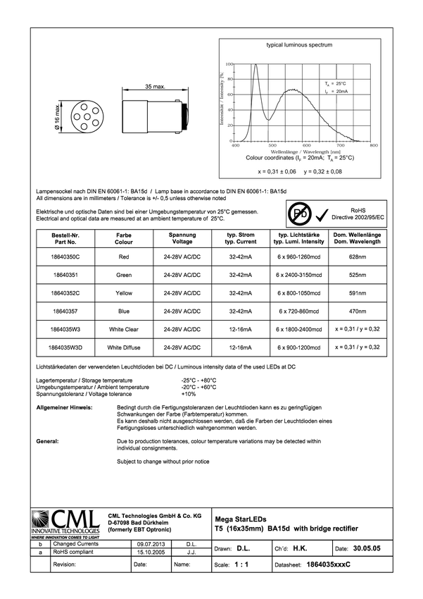 CML 18640351 Lampka sygnalizacyjna LED zielony BA15D 24 V/DC, 24 V/AC 3150 mcd