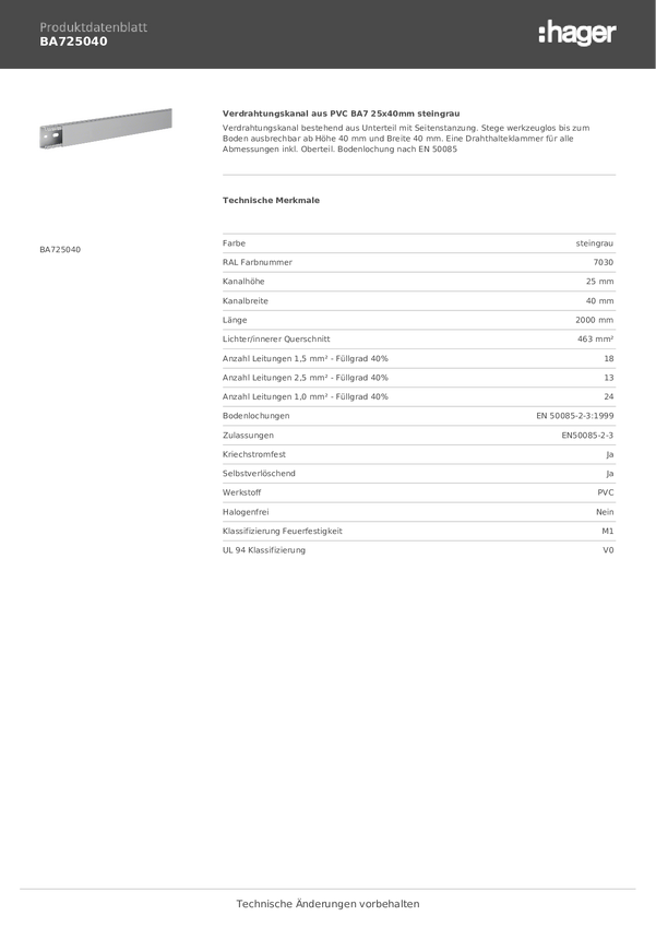 Kanał na wiązki Hager BA725040 BA725040 (D x S x W) 2 m x 40 mm x 25 mm 2 m