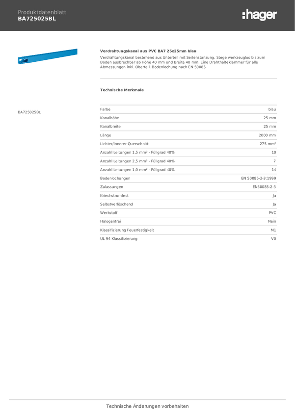 Kanał na wiązki Hager BA725025BL BA725025BL (D x S x W) 2 m x 25 mm x 25 mm 2 m