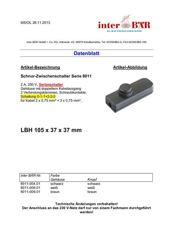 Bachmann 924055 Przełącznik przewodowy biały 1 szt.