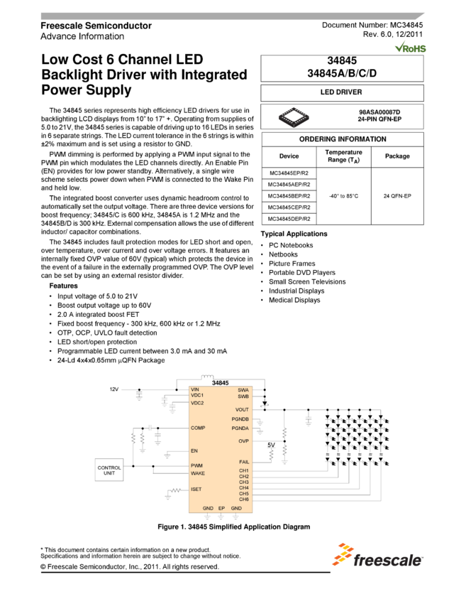 Low-cost 6 Channel LED Backlight Driver with Integrated Power Supply