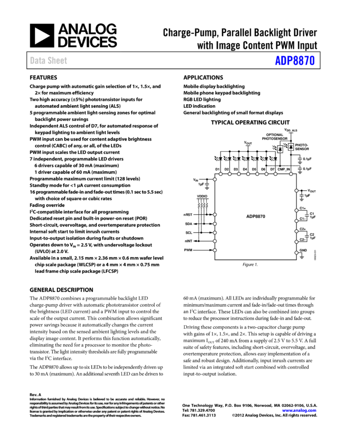 ADP8870: Charge Pump Parallel Backlight Driver with Image Content PWM Input