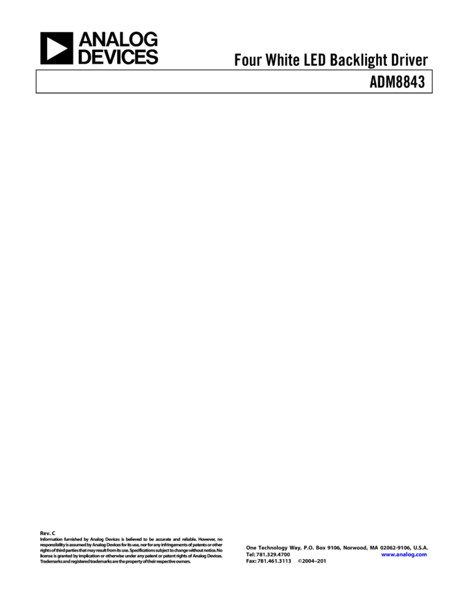 ADM8843: Four White LED Backlight Driver