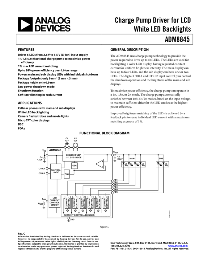 2.4V LED Driver with Independent Analog and PWM Dimming Controls of 2 Backlights for 3D Application