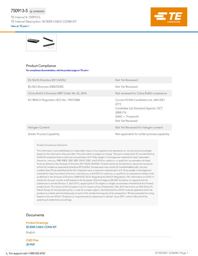 TE Connectivity 750913-5 TE AMP AMPLIMITE .050 Hardware/Backshells/Conn, 1 szt.