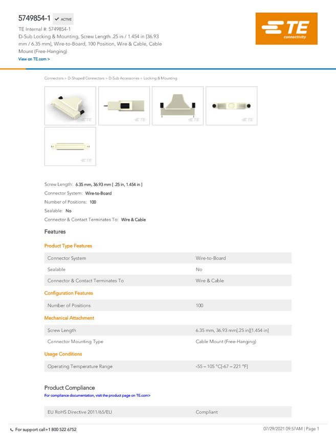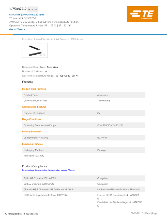 AMPLIMITE .050 Hardware/Backshells/Conn TE AMP AMPLIMITE .050 Hardware/Backshells/Conn 1-750877-2 TE Connectivity Zawart