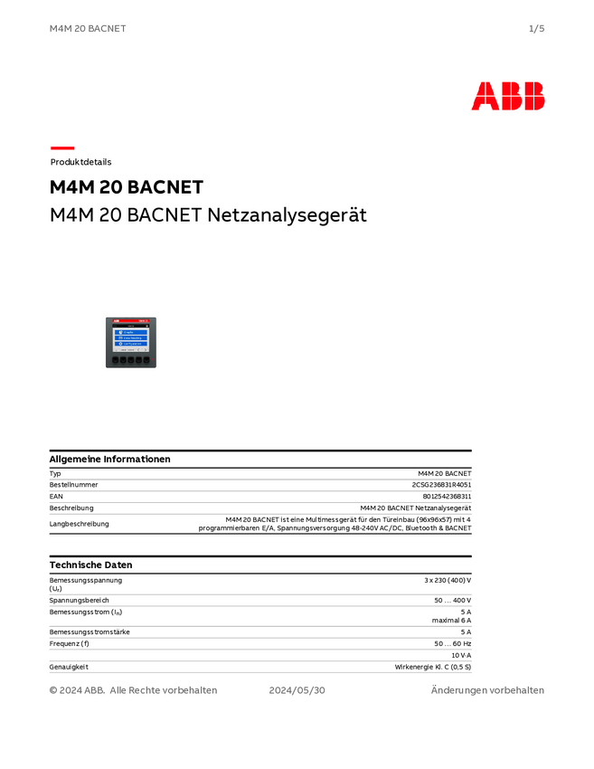 Analizator sieci ABB M4M 20 BACNET 2CSG236831R4051