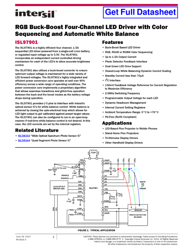RGB Buck-Boost Four-Channel LED Driver with Color Sequencing and Automatic White Balance