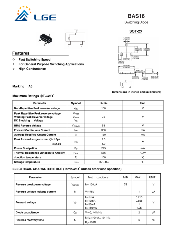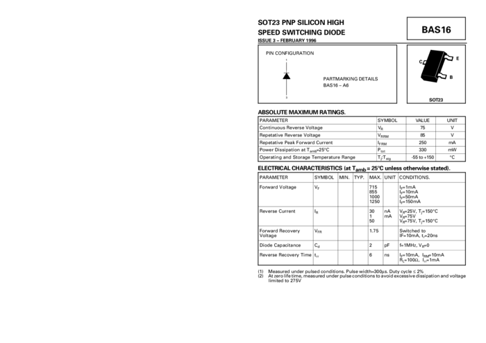 Diode Small Signal Switching 100V 0.25A 2-Pin SOD-323 T/R
