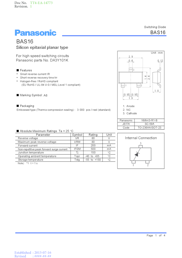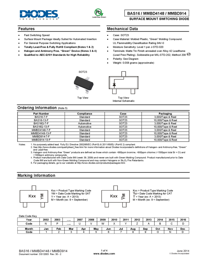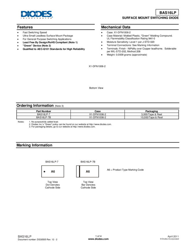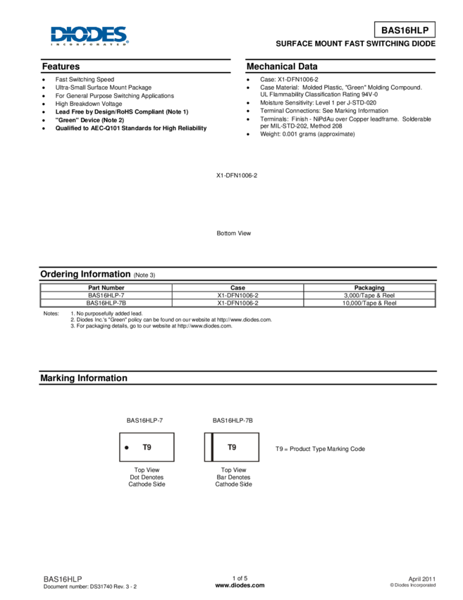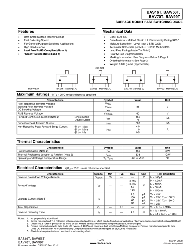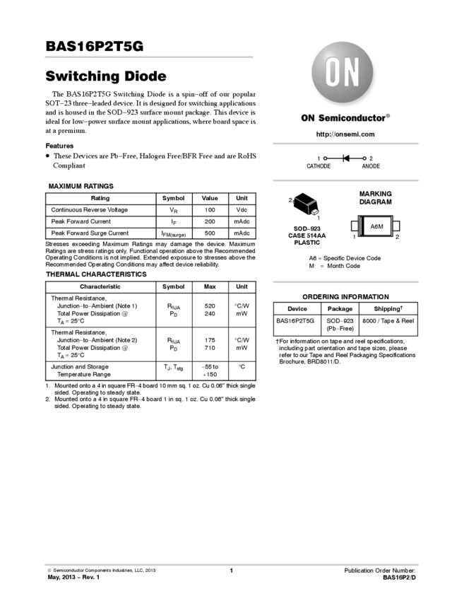 Diode Switching 100V 0.2A 2-Pin SOD-923 T/R