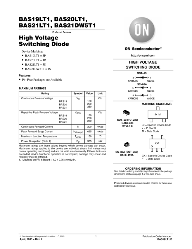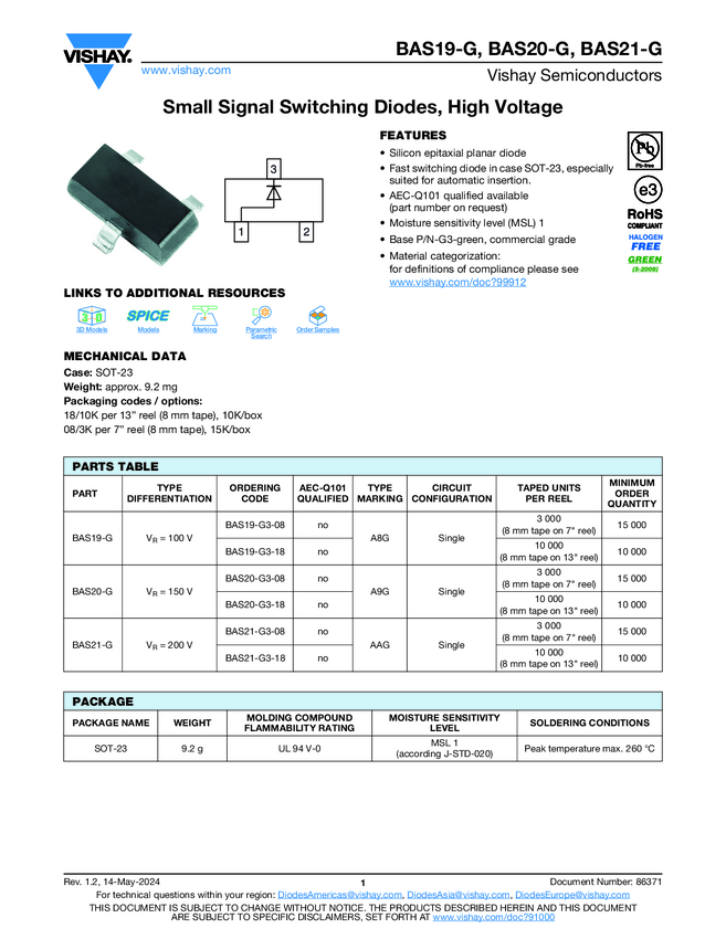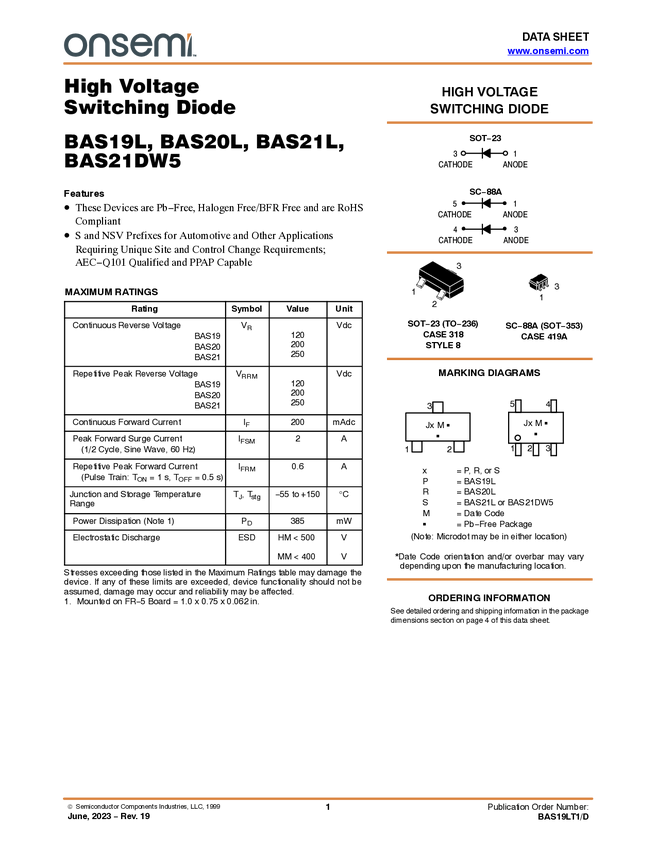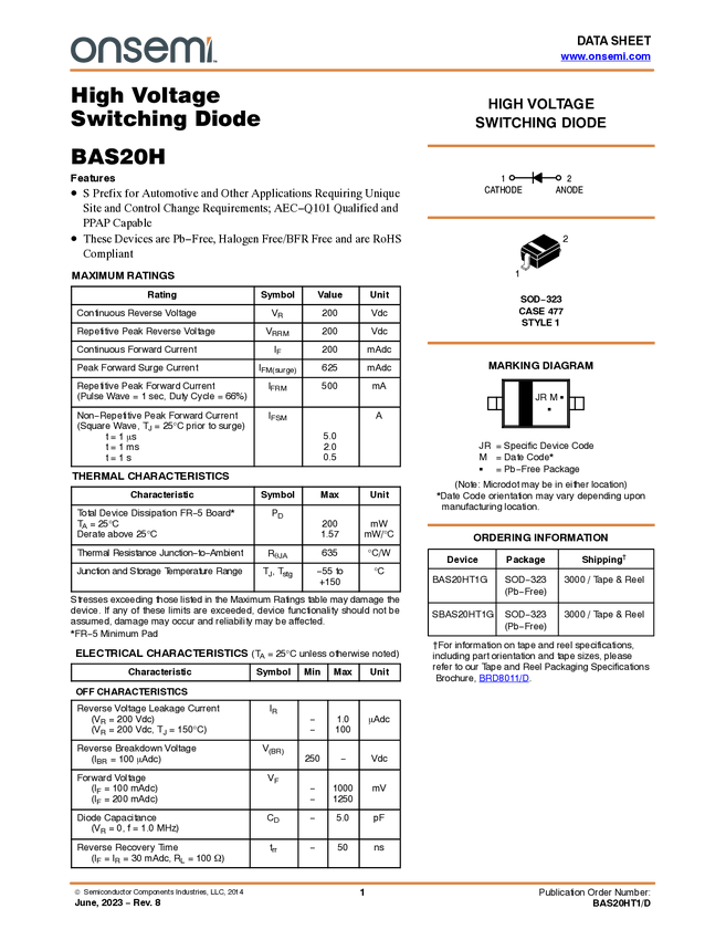 Dioda; przełączająca; BAS20; 200mA; 200V; 250mW; SOT23; SMD; BAS20.215; RoHS; op/100szt