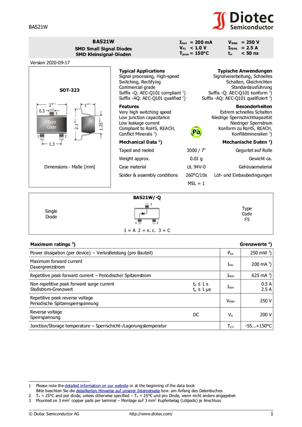 Dioda małego sygnału Diotec BAS21W-AQ N/A N/A