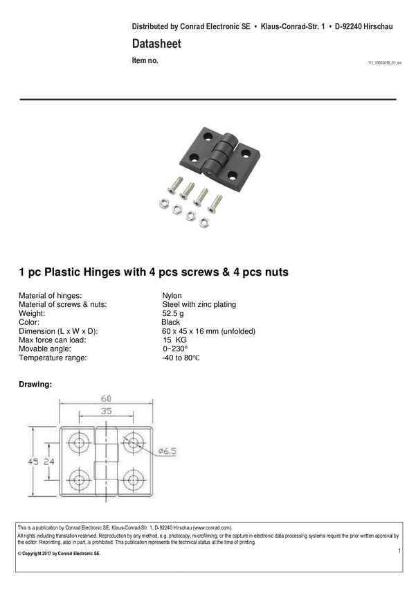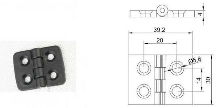 Zawias z tworzywa sztucznego 39x30x4mm Basetech BT-1697225, (D x S x W) 39 x 30 x 4 mm, 1 szt.