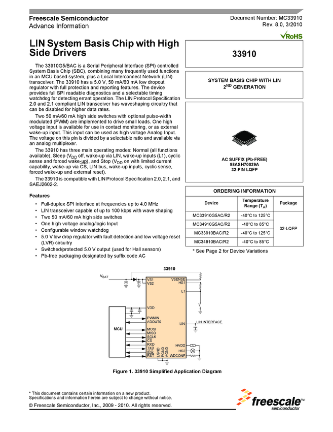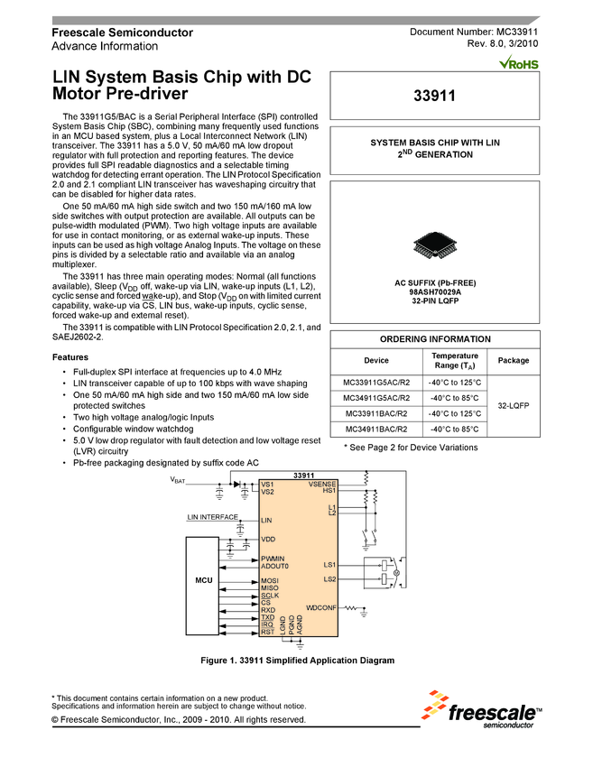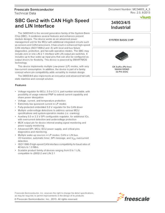 MC33903: System Basis Chip Gen2 with High-speed CAN and LIN