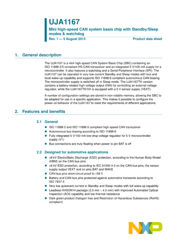 Mini high-speed CAN system basis chip with Standby/Sleep modes & watchdog