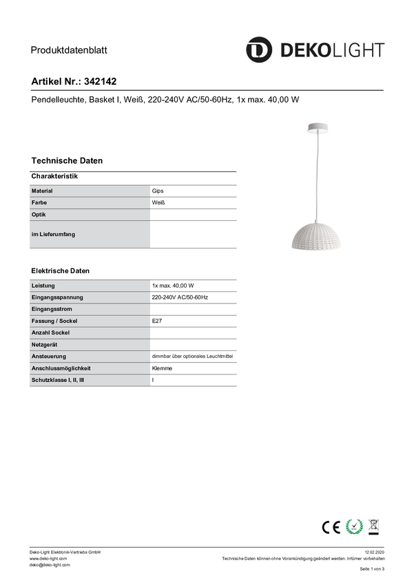 Lampa sufitowa, podwieszana Deko Light Basket II 342143 E-27 40 W biały