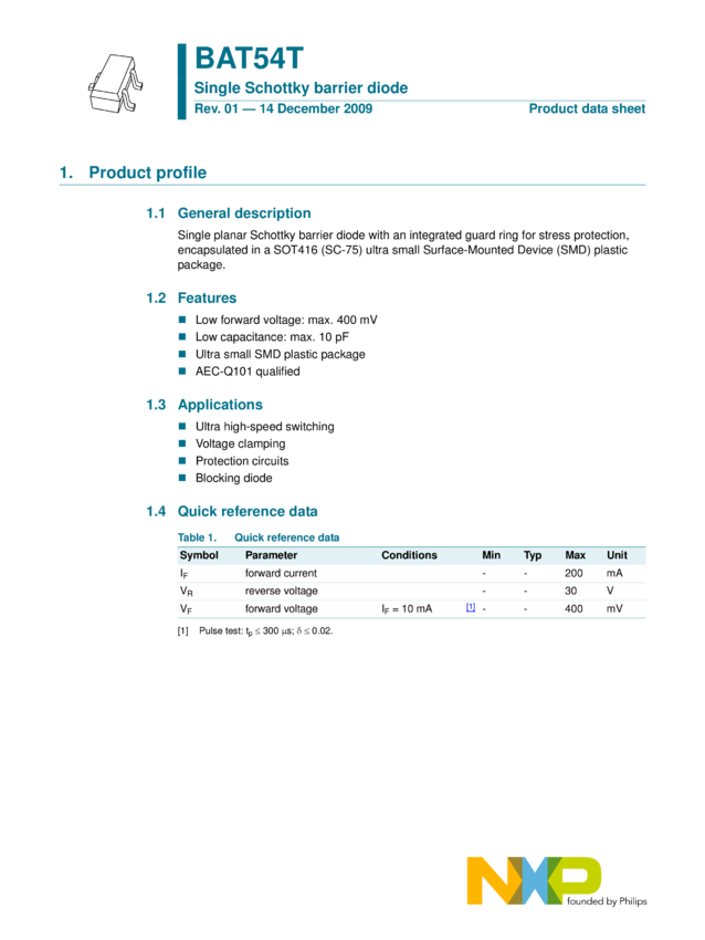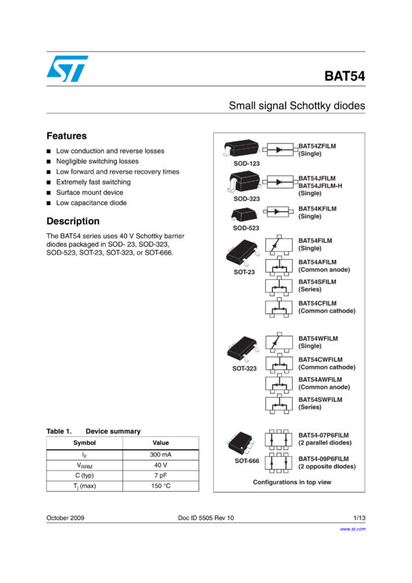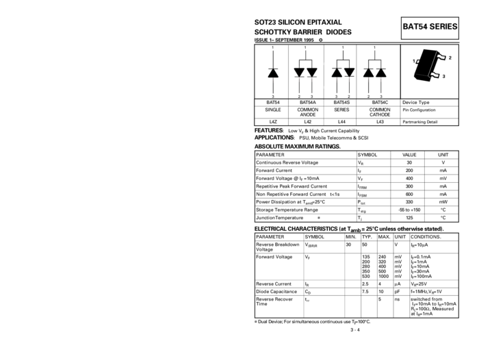 Dioda Schottky BAT54, 30V, 0.2A, pojedyncza, SOT23 ARK