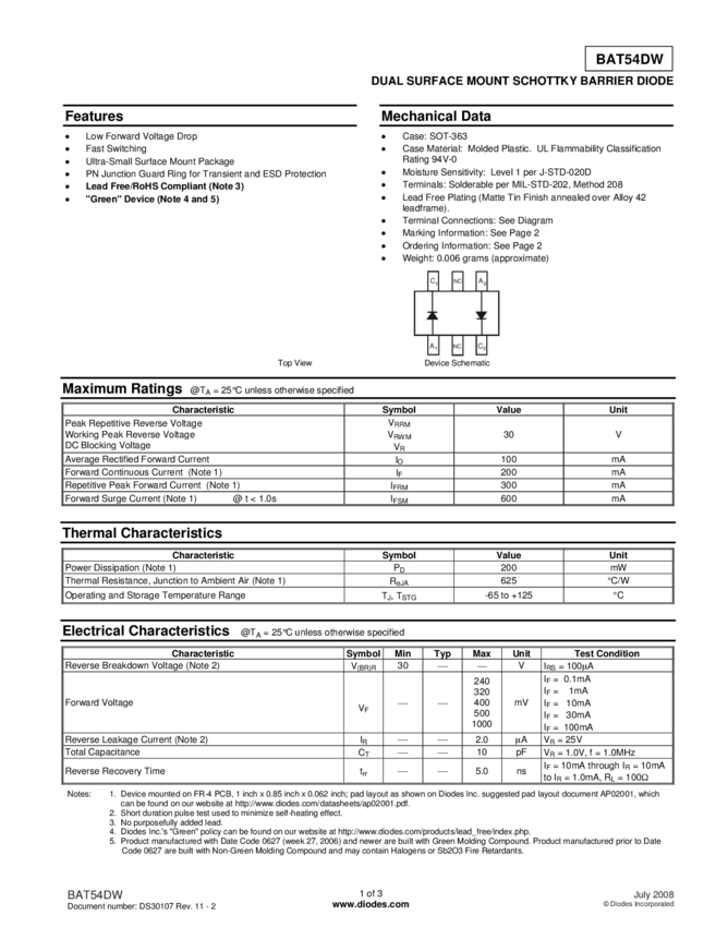 DUAL SURFACE MOUNT SCHOTTKY BARRIER DIODE