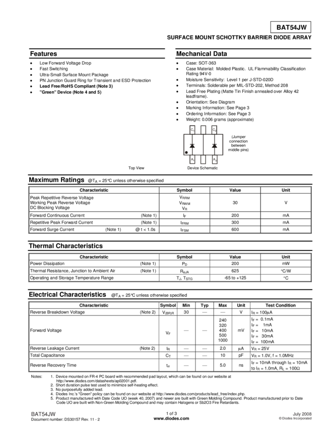 SURFACE MOUNT SCHOTTKY BARRIER DIODE ARRAY