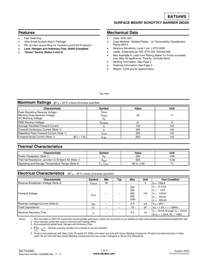0.2A SURFACE MOUNT SCHOTTKY BARRIER DIODE