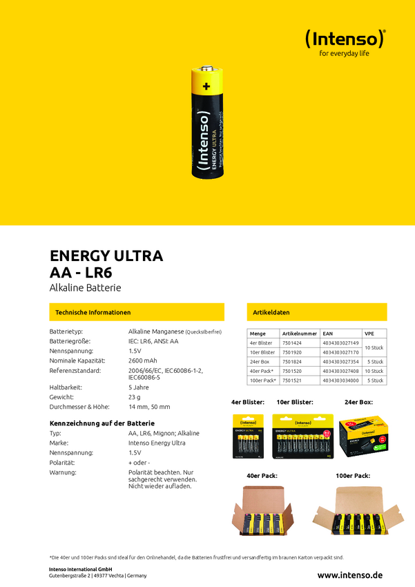 Baterie AA Intenso 7501520 7501520, 1.5 V, alkaliczno-manganowe, 40 szt.
