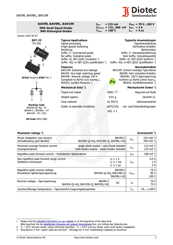 Dioda małego sygnału Diotec BAV199-AQ N/A N/A