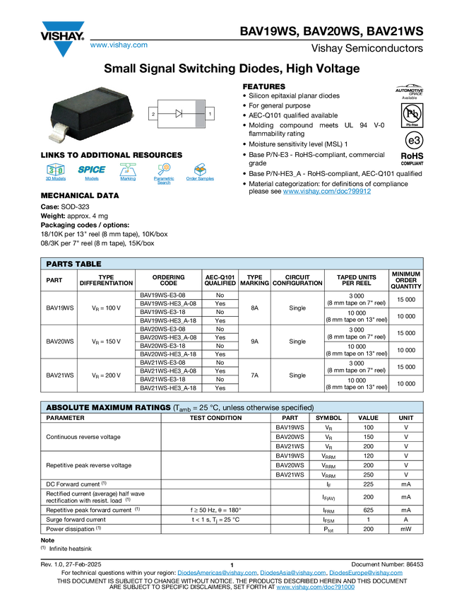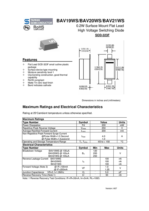 Dioda ESD Taiwan Semiconductor BAV21WS RRG N/A N/A