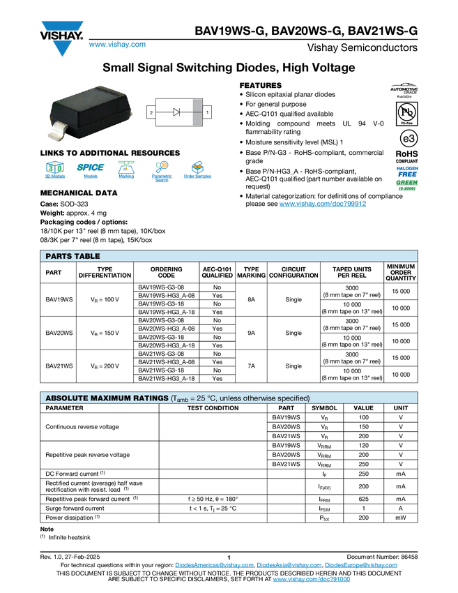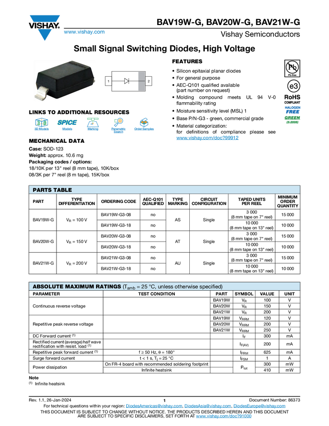 Dioda ESD Taiwan Semiconductor BAV21W RHG N/A N/A