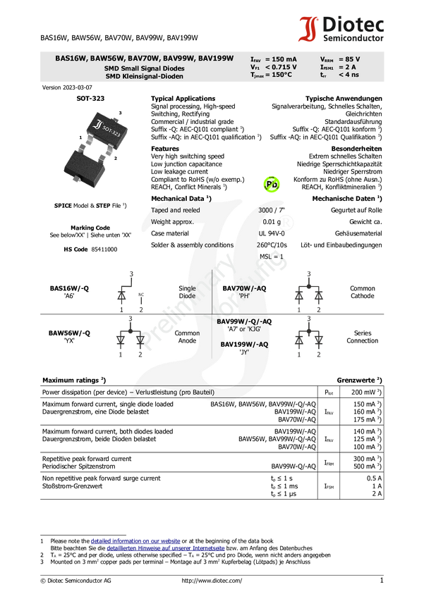 Dioda małego sygnału Diotec BAV70W N/A N/A