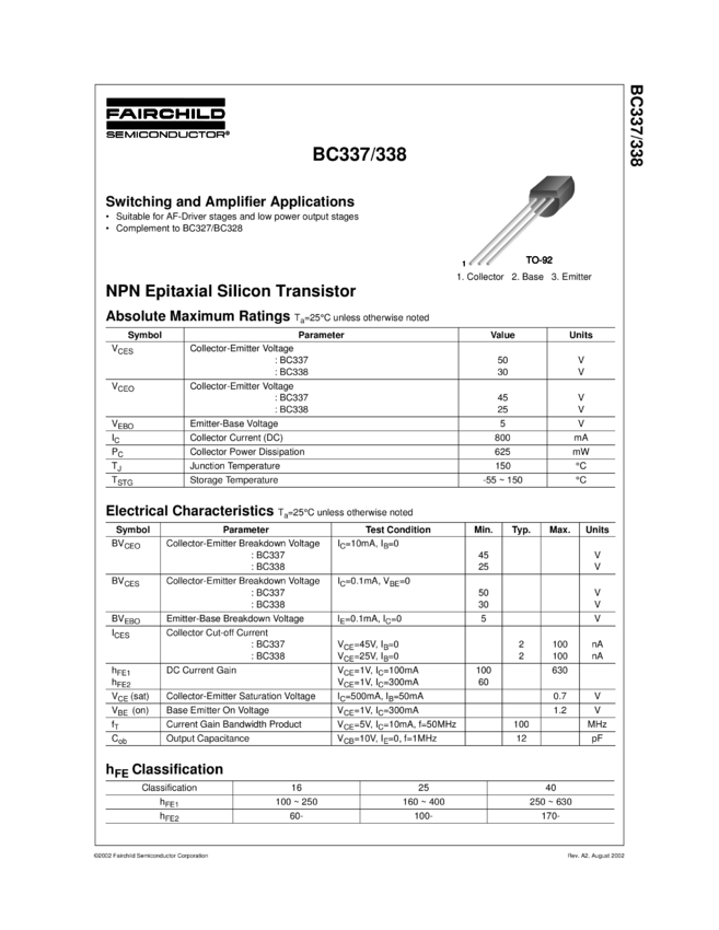 Tranzystor NPN, 0.8A, 45V, TO92, producent: Diotec