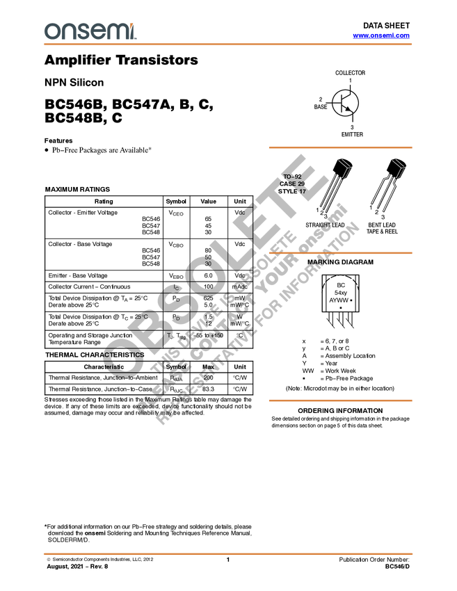 Tranzystor NPN, 0.1A, 65V, TO92 LGE