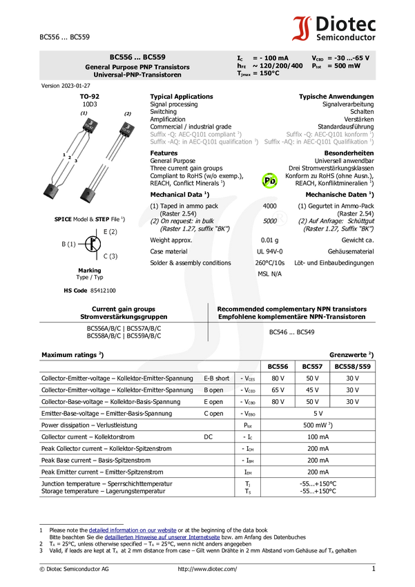 Diotec BC556ABK Tranzystor (BJT) - dykretny 1 szt.