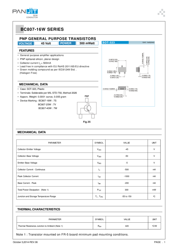 Trans GP BJT PNP 45V 0.5A 3-Pin SOT-323 Plastic T/R