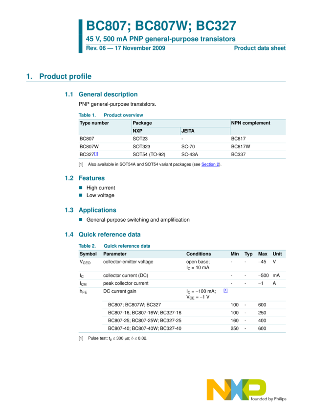 Tranzystor PNP, 0.5A, 45V, SOT23