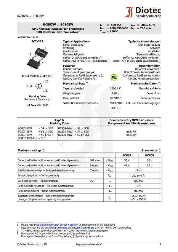 Diotec BC807-40W Tranzystor (BJT) - dykretny 1 szt.