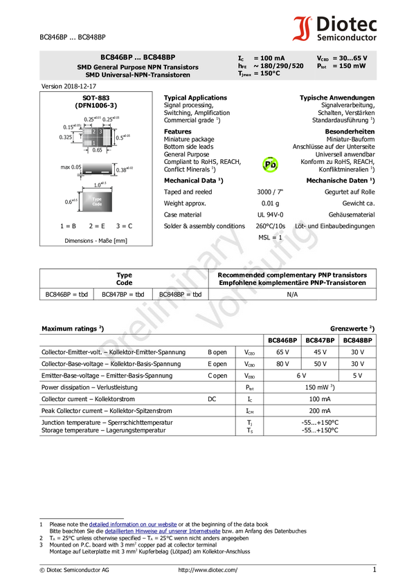 Diotec BC847BP Tranzystor (BJT) - dykretny 1 szt.
