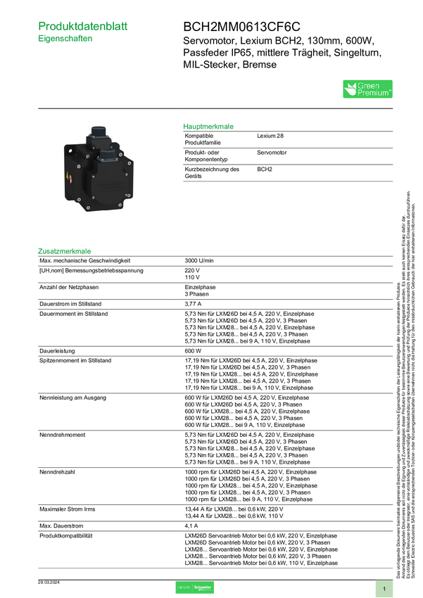 Silnik serwo Schneider Electric BCH2MR3013CA6C