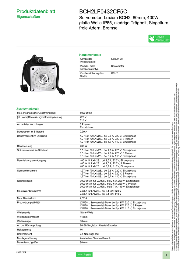 Silnik serwo Schneider Electric BCH2LF0432CF5C