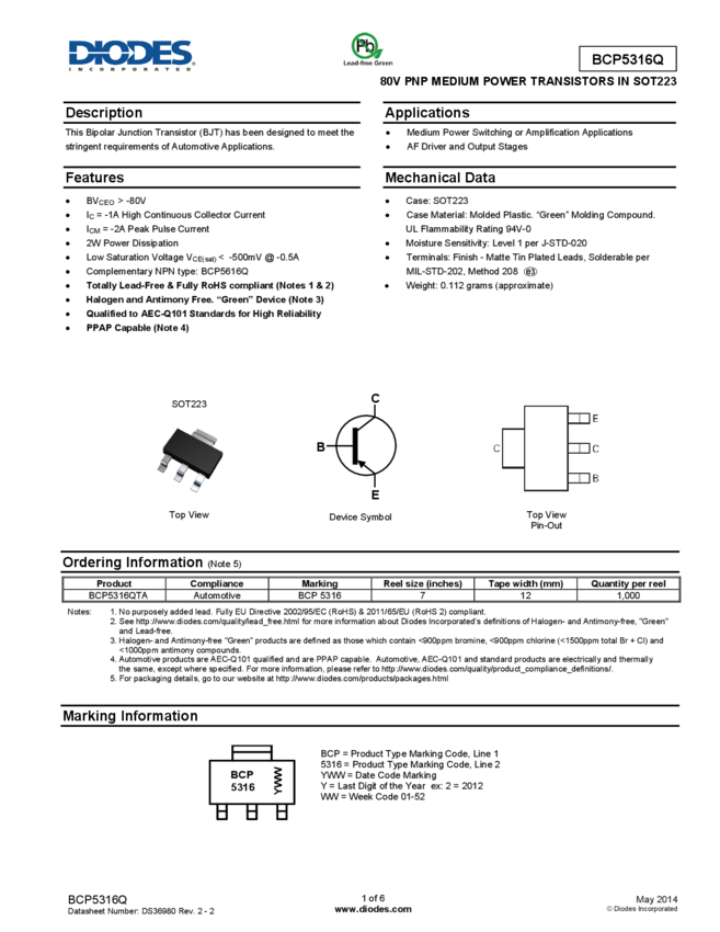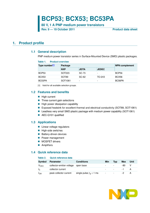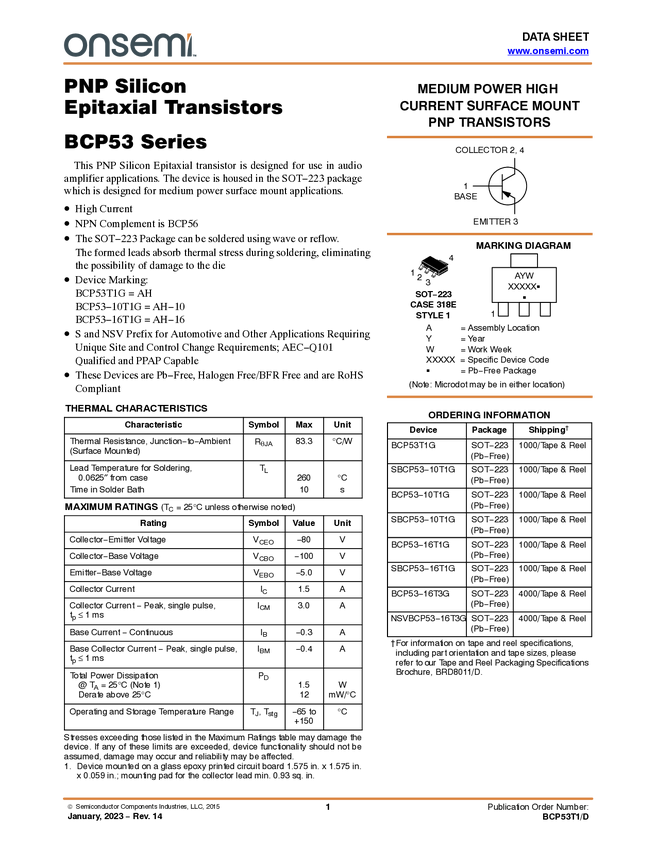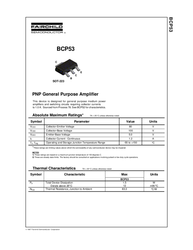 General Purpose Transistor Medium Power, PNP 80 V, 1 A