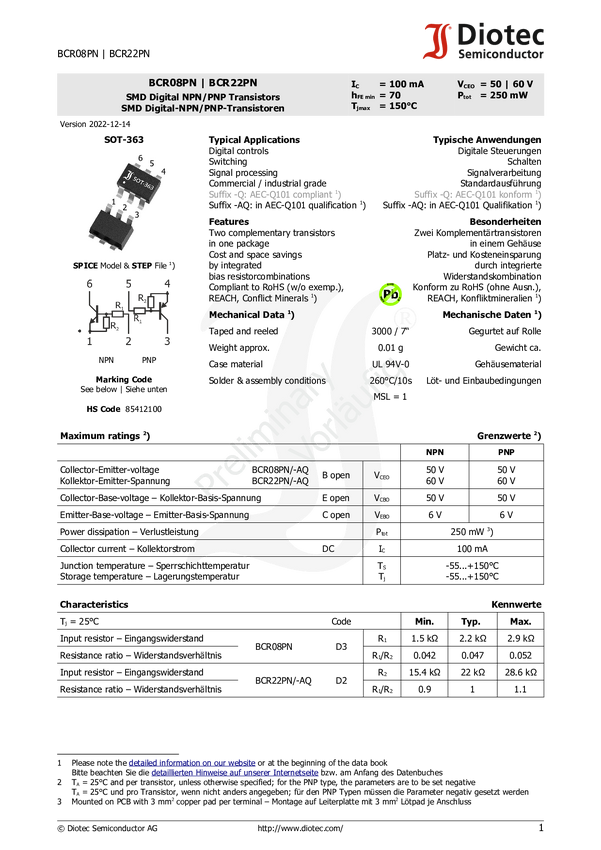 Diotec BCR08PN Tranzystor cyfrowy 1 szt.