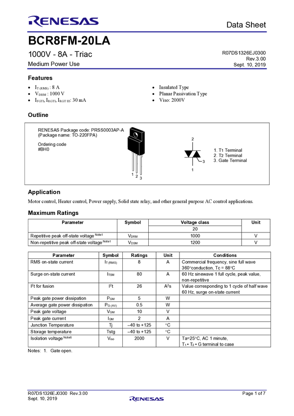 1000V - 8A - Triac Medium Power Use