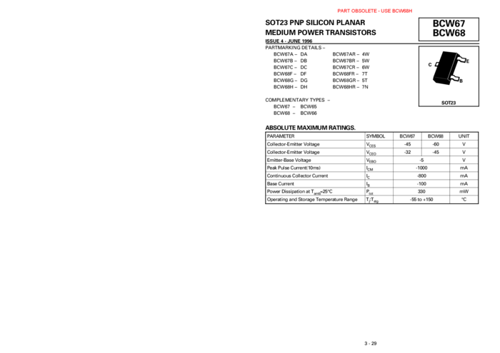 Tranzystor PNP, 0.8A, 45V, SOT23