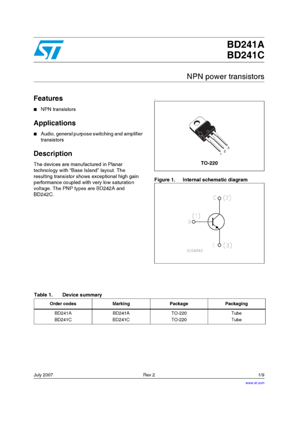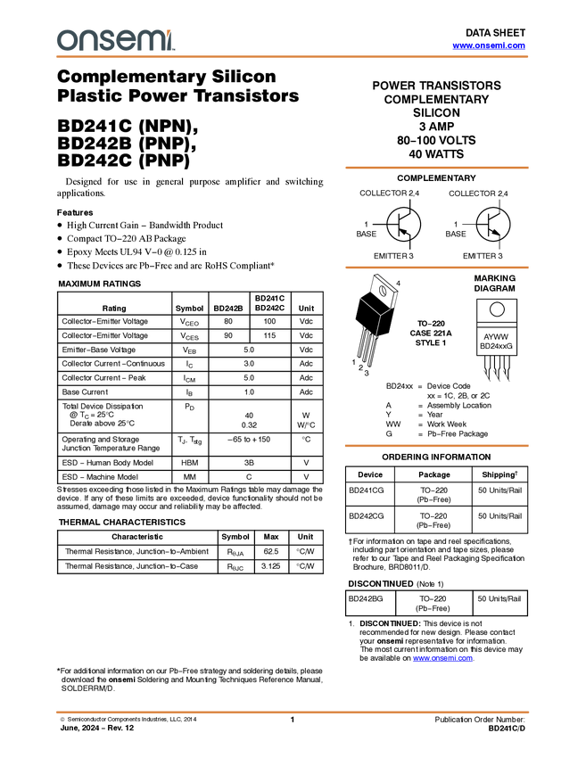 3.0 A, 100 V, 40 W NPN Bipolar Power Transistor