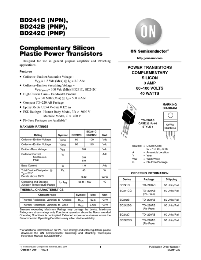 COMPLEMENTARY SILICON POWER TRANSISTORS