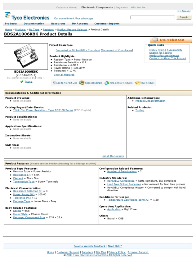 Res Thick Film 6.8K Ohm 10% 100W ±150ppm/°C Screw Terminal Bolt-On