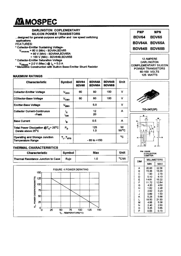 10 A, 100 V PNP Darlington Bipolar Power Transistor