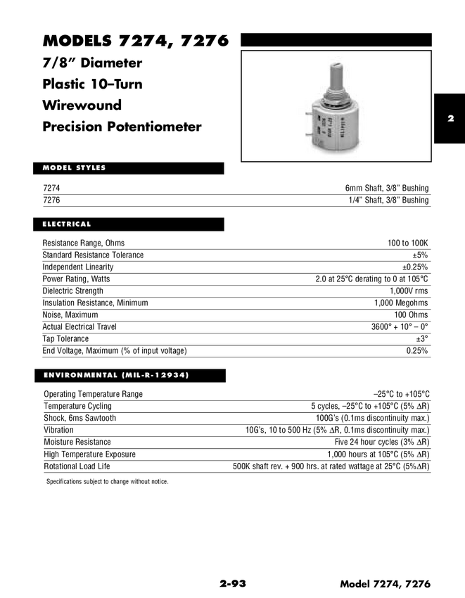 =PP6574 bourns;beckman Potencjometr przewodzący plastyk, Serwo 1 obrotowy; średnica 2"; średnica ośki 1/4"