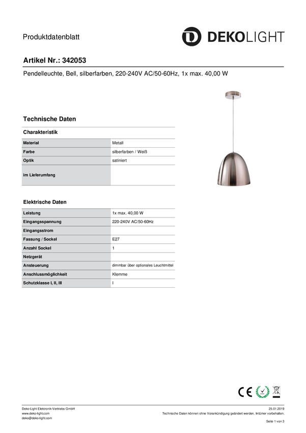 Lampa sufitowa, podwieszana Deko Light Bell 342053 E-27 40 W srebrny
