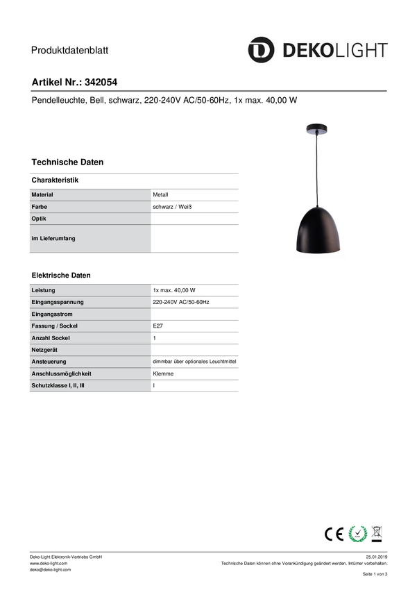 Lampa sufitowa, podwieszana Deko Light Bell 342054 E-27 40 W czarny