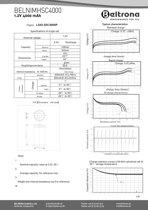 Akumulator specjalny Beltrona BELNIMHSC4000HBG, NiMH, 4000 mAh, 1.2 V, 1 szt.